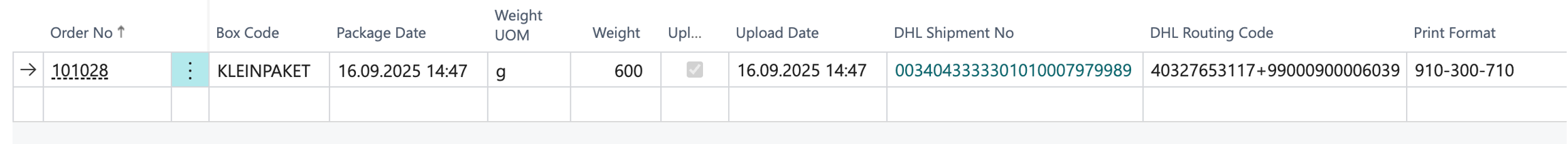 The DHL shipment number is added automatically once the package has been successfully uploaded to DHL. This number includes a link to shipment tracking.